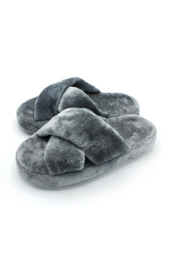 Gri Peluş Çapraz Model Ev Terliği A0401