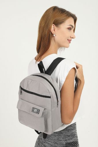 Gri U15 3 Bölmeli Ön Cep Detaylı Kanvas Kumaş Unisex Sırt Çantası U:30 E:25 G:9