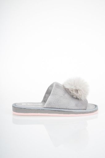 Gri/Pudra Ponponlu Ev Terliği A0342