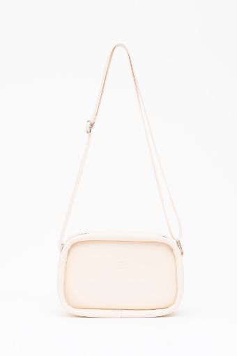 Krem Shk62 Tek Bölmeli Suni Deri Ayarlanabilir Askılı Fermuarlı Çapraz Omuz Çantası U:15 E:21 G:7 cm