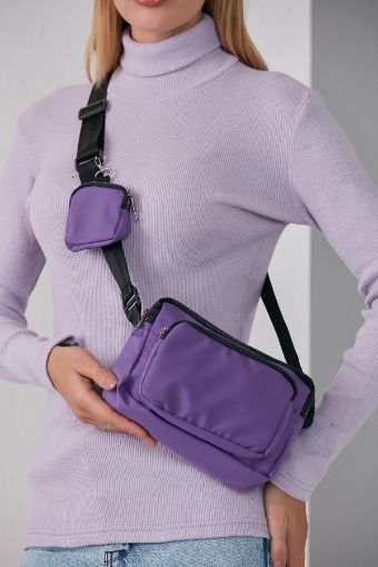 Mor U4 2 Bölmeli ve Cüzdanlı Ayarlanabilir Askılı Kanvas Kadın Çapraz Omuz Çantası B:17 E:22 G:12