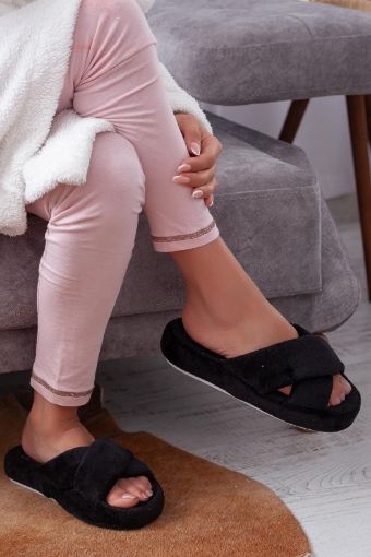 Siyah Peluş Çapraz Model Ev Terliği A0401