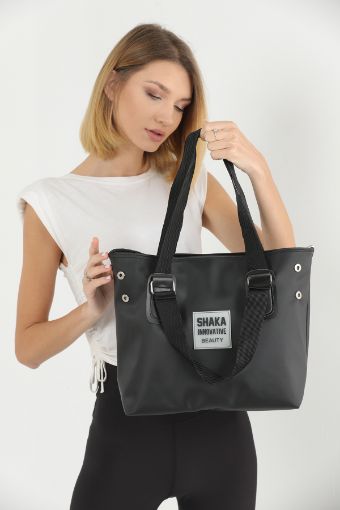 Siyah Shk14 Fermuar Kapatmalı Çift Kol Askılı Günlük Şık Kadın Kol ve Omuz Çantası U:28 E:42 G:13