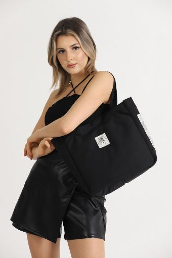 Siyah Shk52 The Tote Bag Kanvas Kumaş Günlük Kadın Kol ve Omuz Çantası U:30 E:30 G:10